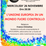 Mercoledì 26 novembre alle ore 20.30 Franco Chittolina terrà un intervento sui temi dell'attualità europea e internazionale dal titolo "L'Unione Europea in un mondo...