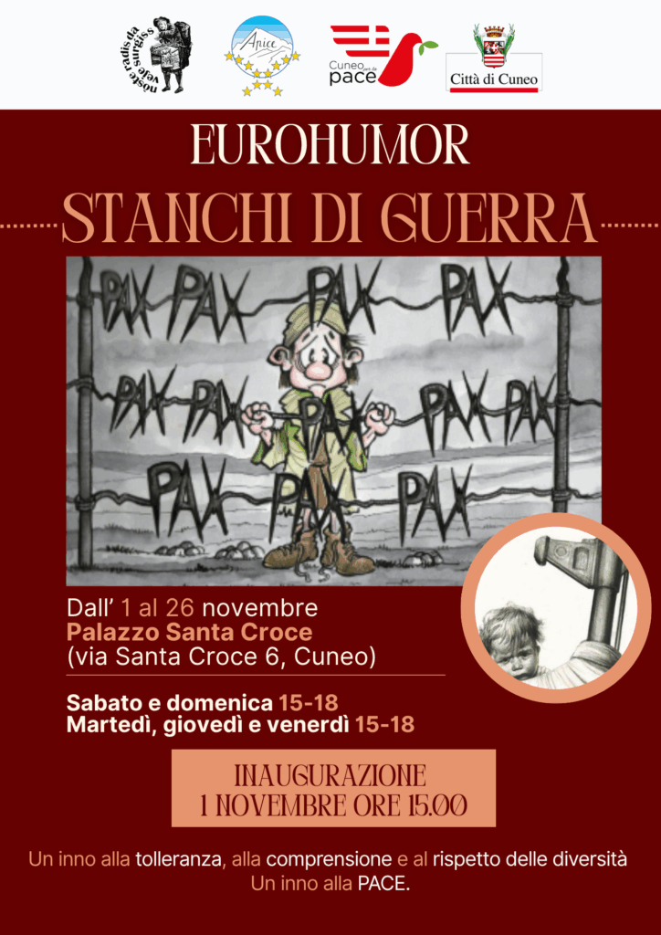 Sabato 1 novembre è stata inaugurata la mostra “Eurohumor: stanchi di guerra”, che resterà visitabile fino al 25 novembre il martedì, giovedì, venerdì, sabato e domenica dalle 15 alle 18.