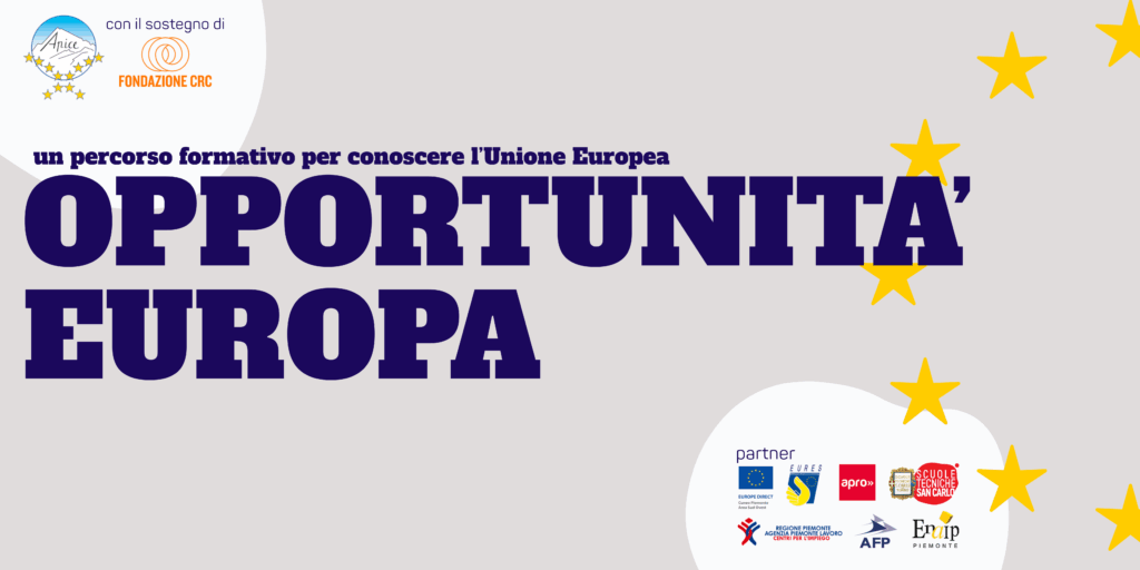 Descrizione“Opportunità Europa” si propone di coinvolgere alcune classi delle agenzie di formazione professionale della provincia di Cuneo (APRO Formazione di Alba, AFP di Dronero e di Verzuolo, ENAIP di Cuneo e  Scuola San Carlo di Cuneo) in un percorso formativo composto da tre moduli: